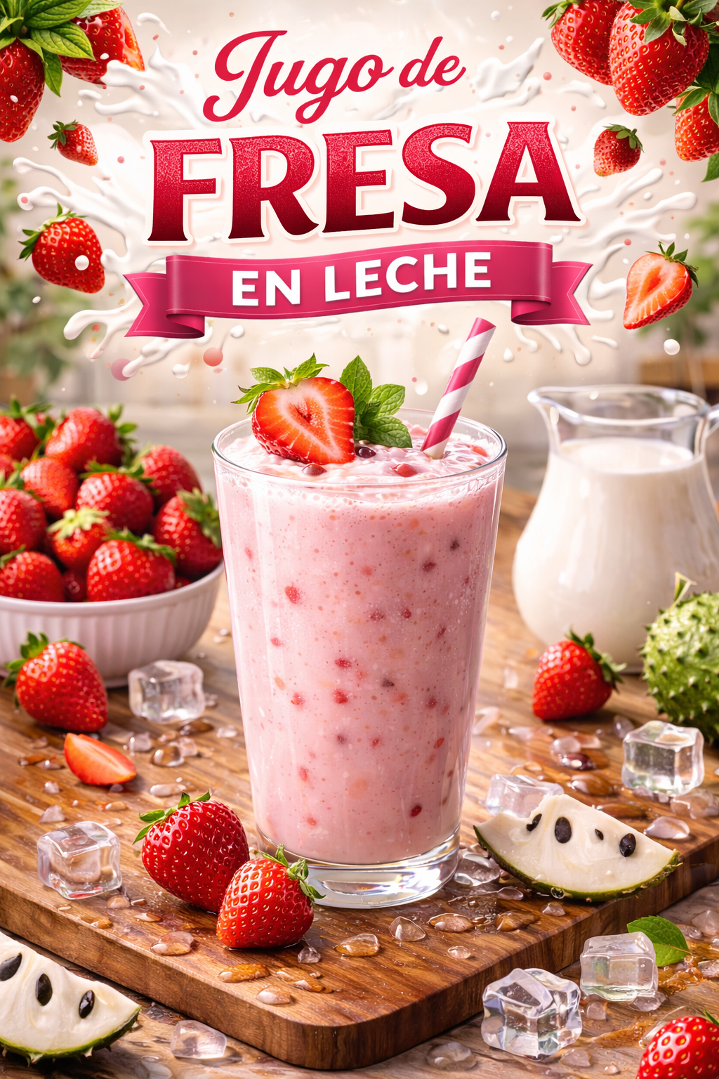 El jugo de fresa en leche es una bebida dulce, cremosa y muy refrescante, ideal para cualquier momento del día.