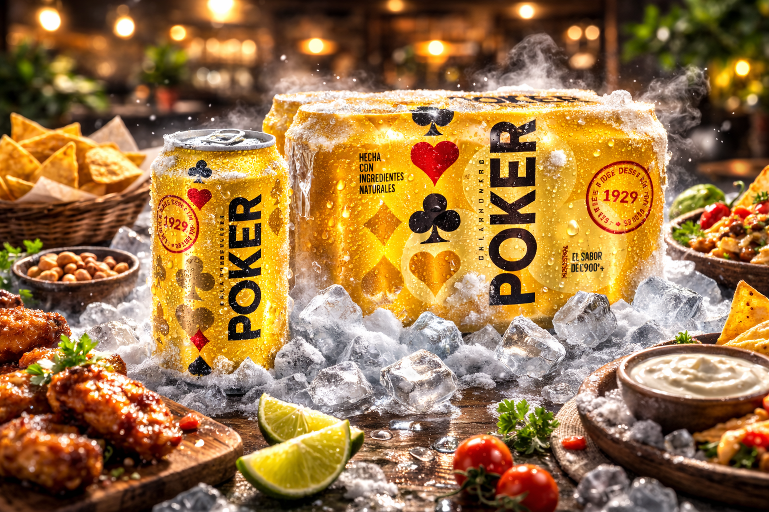 El Six Pack Poker 330 ml es una presentación práctica y perfecta para compartir, que incluye seis latas individuales de 330 ml cada una. Ideal para reuniones, celebraciones o momentos de diversión entre amigos, esta cerveza destaca por su frescura y sabor equilibrado.