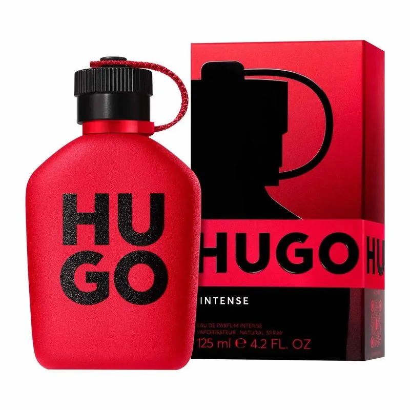 Hugo Intense se lanzó en 2023. Las Notas de Salida son manzana roja, lima (limón verde), canela y toronja sanguina; las Notas de Corazón son geranio y tomillo rojo; las Notas de Fondo son cuero, cedro y pachulí.